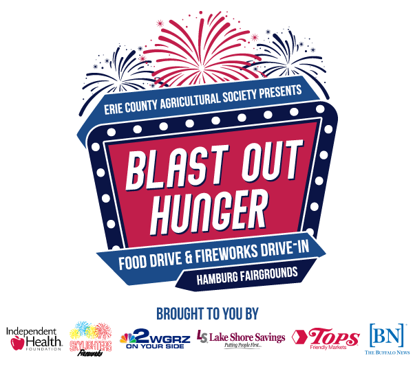 The Erie County Agricultural Society is proud to announce BLAST OUT HUNGER, a Food Drive and Fireworks “Drive-In” at the Hamburg Fairgrounds on Saturday, August 15, 2020.