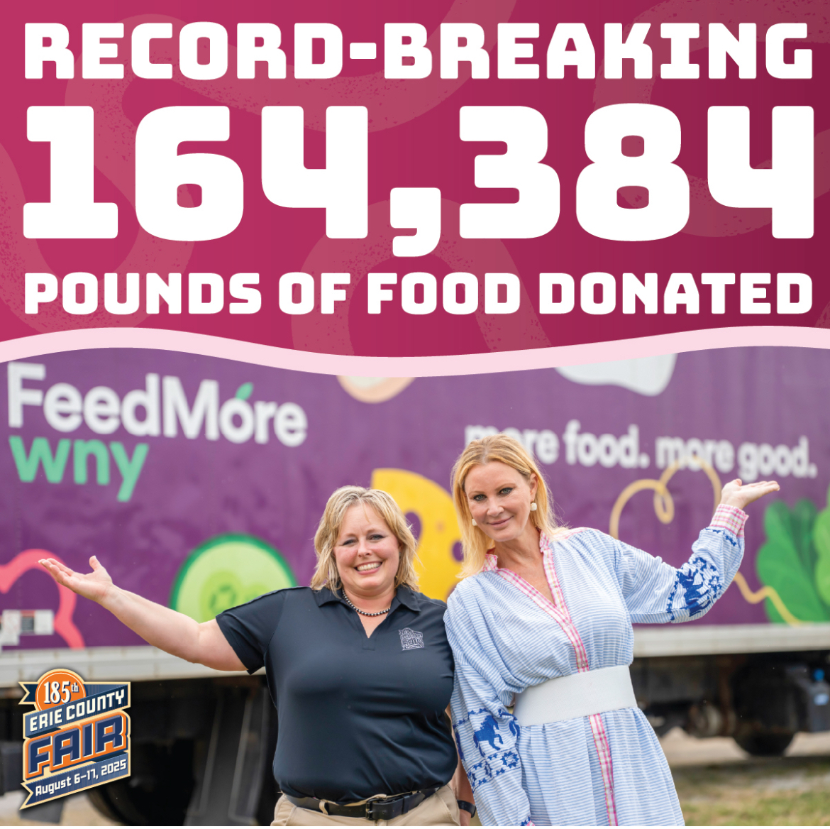 “FeedMore WNY is incredibly grateful for the continued partnership of the Erie County Agricultural Society and the outpouring of support from the Western New York community,” said Lisa Woodring, FeedMore WNY Executive Vice President of External Affairs. “The number of people seeking nutritional assistance through our network of nearly 400 partner agencies is up more than 22% this year, and this record-breaking effort couldn’t come at a better time.”