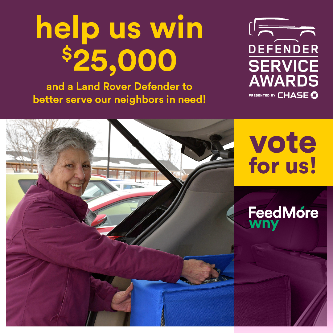 If selected as the winner, FeedMore WNY will receive $25,000 to aid our mission, as well as a new Land Rover Defender 130 to deliver even more nutritious meals to our homebound neighbors in need.
