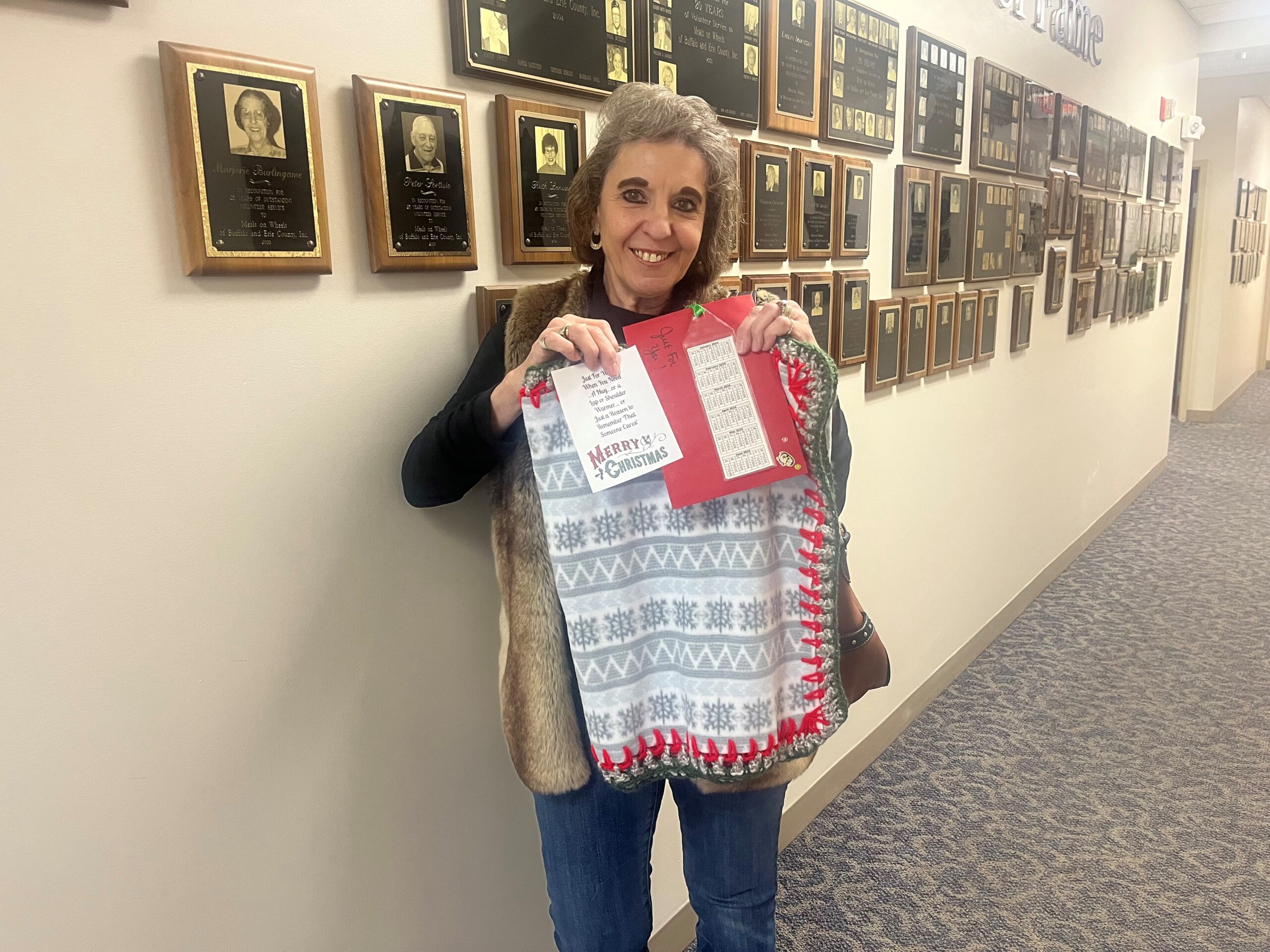 For decades, she has been delivering holiday cheer to the homebound neighbors and older adults served by FeedMore WNY’s home-delivered meal program in the form of handmade scarves and comfort wraps.
