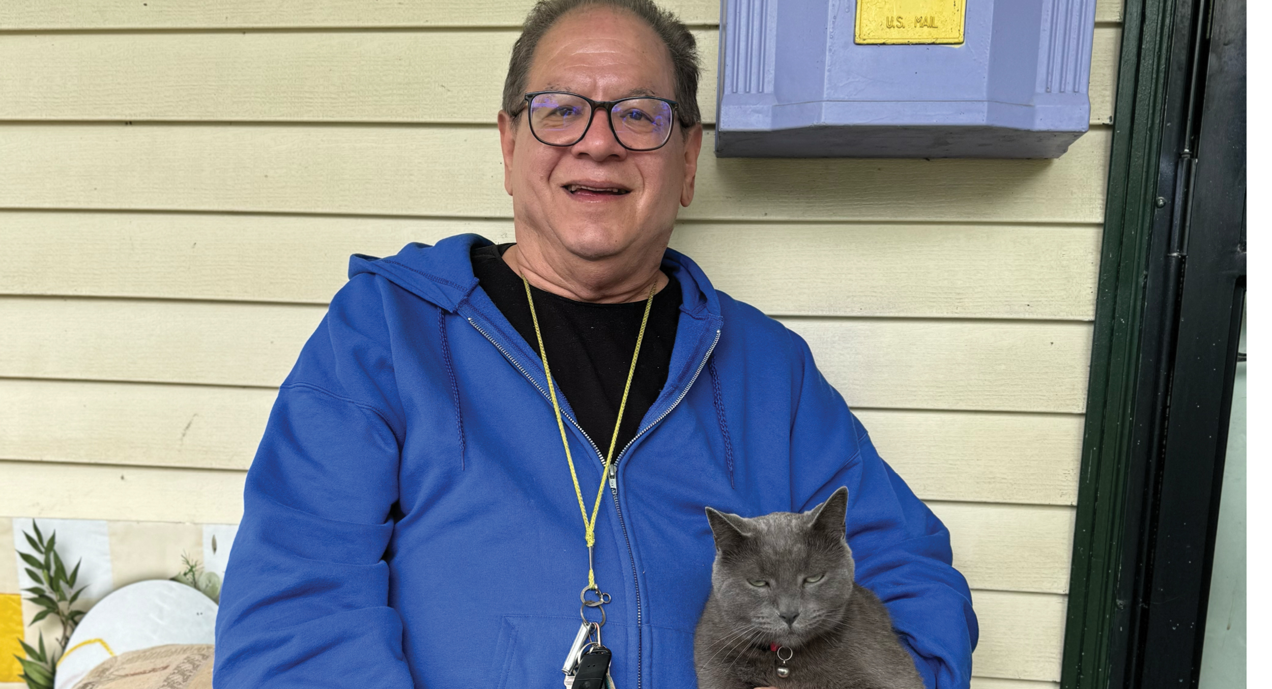 Now retired from a career in restaurant management, Anival lives with mobility limitations including frozen shoulder. The condition can make it hard to manage daily chores, like cooking and caring for his beloved cat, Gus, a Russian Blue that Anival rescued from the streets.