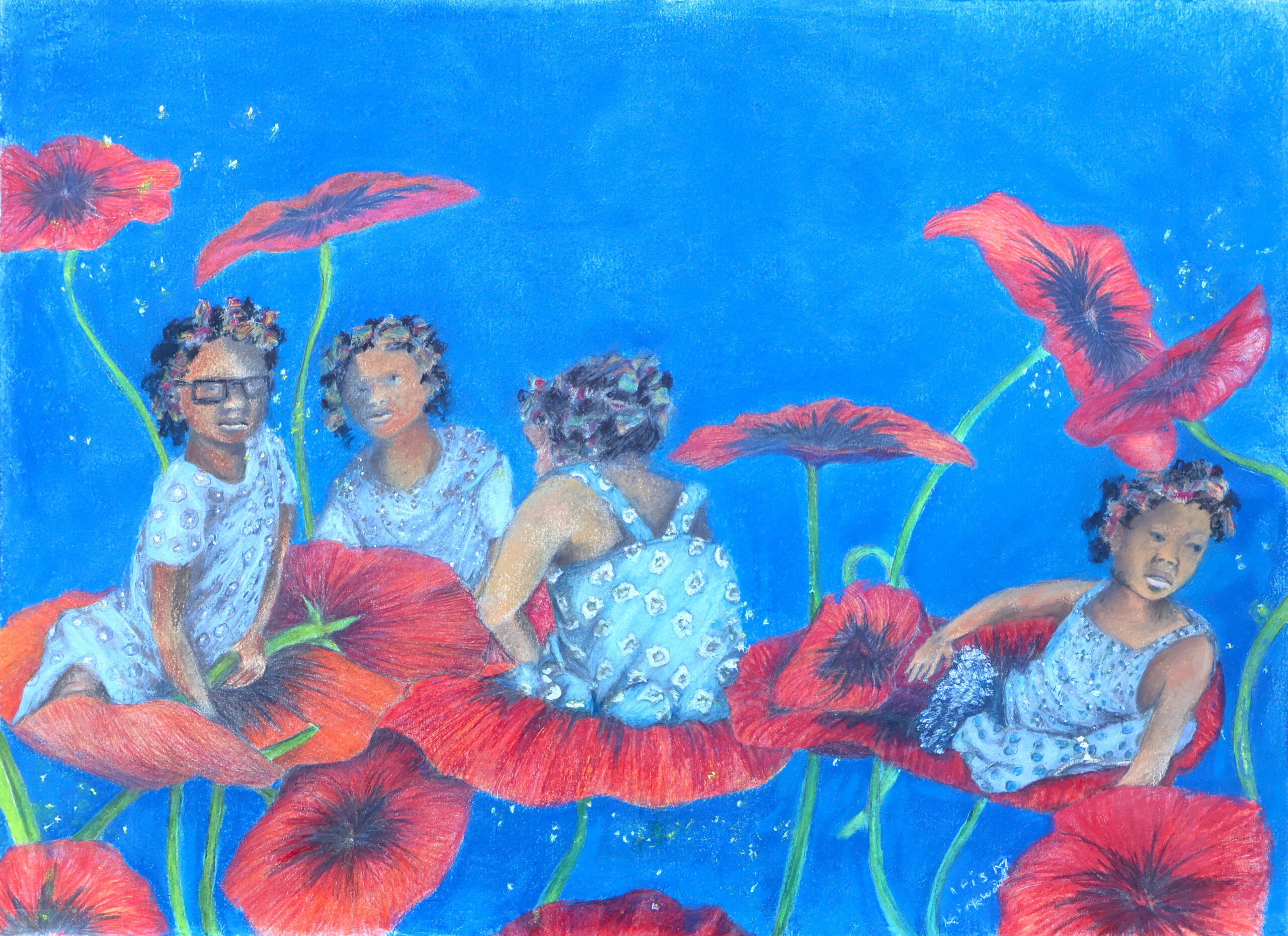 Kirkwood is a Buffalo-born, African American artist and draftsperson who creates visual narratives. “Fireflies” was created using pastel, colored pencil, pencil and correction fluid on watercolor paper.