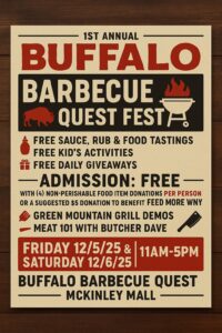 Barbecue lovers, foodies, and families – mark your calendars! The 1st Annual Buffalo Barbecue Quest Fest is firing up the grills at McKinley Mall on Friday, December 5 and Saturday, December 6, 2025, from 11 a.m. to 5 p.m. each day.