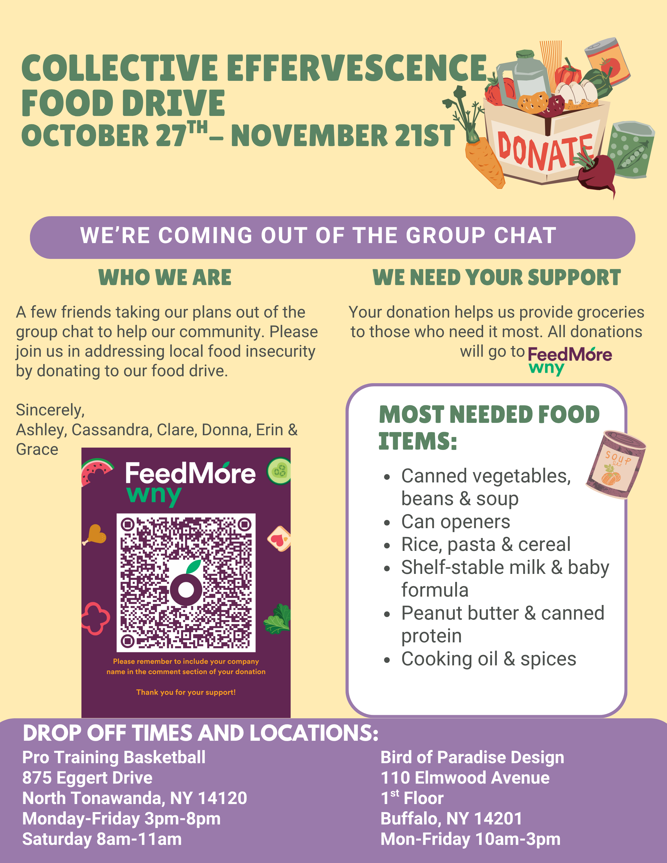 WNY Compassion Connection grief center food drive at 3966 Walden Avenue. Lancaster,NY. Drop off in front vestibule.