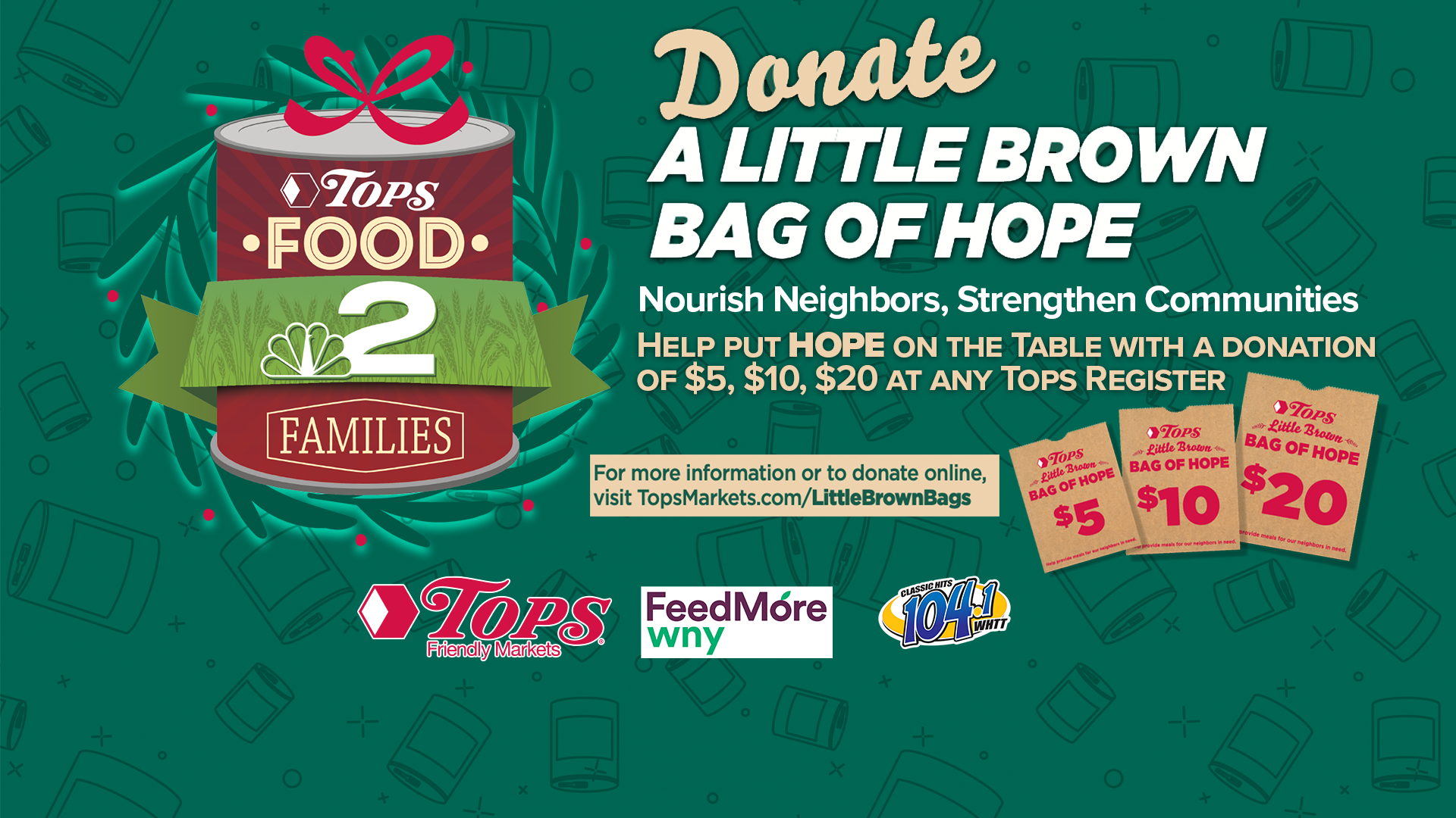 Join us Friday, December 5, for Food 2 Families in partnership with 2 On Your Side WGRZ-TV, Tops Friendly Markets and WHTT Classic Hits 104.1!